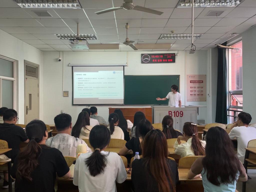 大会伊始,2021级研究生张杰由“新闻为何而生”引入新闻稿撰写的基础知识培训,随后就新闻稿的基本结构与要素、写作技巧、新闻照片的格式、排版与发布展开了详实而生动的讲解。会议进行第二项,黄承石老师对学干工作展开相关培训,提出四点要求和指导,一是提高认识,学生干部是岗位而不是当官;二是提升意识,学生干部是沟通同学与老师的媒介,应该以服务和奉献为主;三是锻炼胆识,有意识地训练自己的胆量;四是展示才识,善于利用平台展示才华,积极把握机会,在过程中不断取得进步,创造丰富多彩的研究生生活。此外,黄承石老师建议各班班委在工作上进行明确的职责划分,以便工作的高效有序展开。