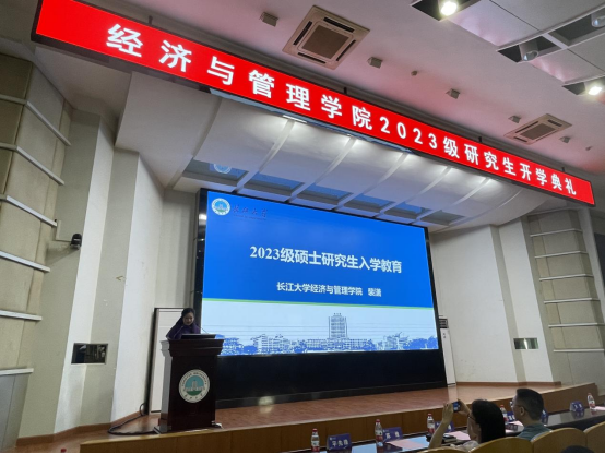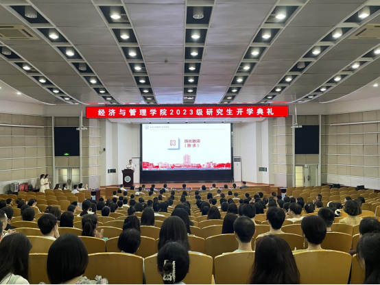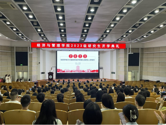 (通讯员 黄承石 图 张悦)2023年9月3日上午8:30,长江大学伟德bv19462023级研究生新生开学典礼暨新生入学教育大会在东校区12号教学楼405学术报告厅顺利举行。伟德国际victor1946研究生工作部部长关辉、伟德bv1946院长陈承、副院长裴潇、副院长何蒲明、副院长王华强、农经系主任林龙飞、MBA中心主任李洪文、MPACC中心主任肖博、MPACC教学秘书陈维、研教办老师宋玉婷、谢本贵、研工办辅导员朱翠玲、黄承石等出席开学典礼。全体2023级278名研究生新同学、以及部分往届学生代表共同见证这一时刻。开学典礼由经济与管理学院党委副书记平先锋主持。