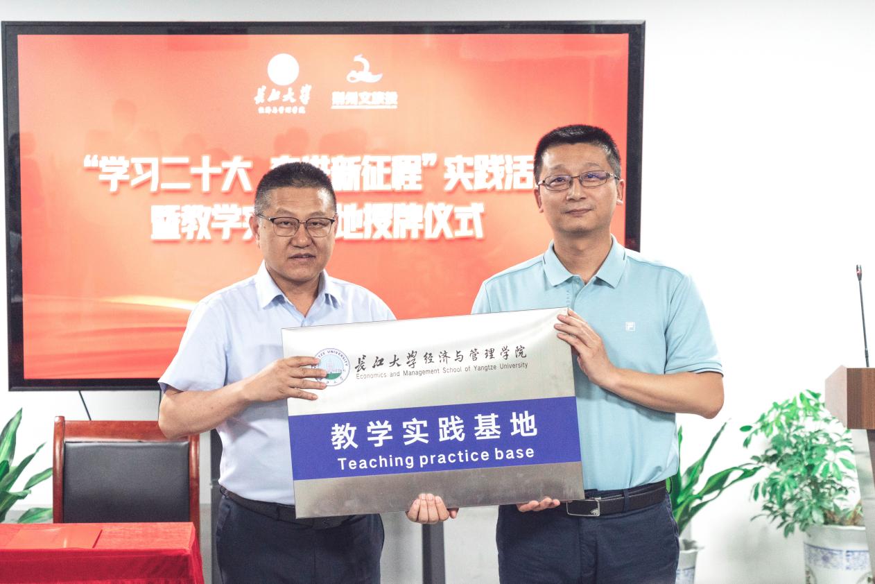(通讯员 黄胜胜 唐丹)为提高学院本科生实践能力、提升本科人才培养质量,增进校地校企合作,伟德bv1946与荆州文化旅游投资有限公司于2023年5月25日下午15:00在荆州市沙市区洋码头文创园会议室隆重举行实践基地授牌仪式。荆州文旅投副总经理余波,副总经理董文及荆州文旅投职能科室负责人,伟德bv1946副院长陈承,王萍、彭德春、胡云、黄胜胜四位老师出席仪式,我院2020级市场营销专业30名学生参加授牌仪式,仪式由荆州文旅投副总经理董文主持。