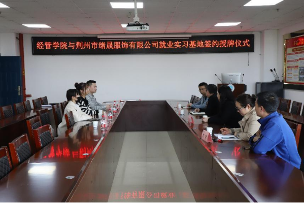 (通讯员:彭蓉)3月8日下午,我院与荆州市绪晟服饰有限公司在学院505会议室举行了大学生就业实习基地签约授牌仪式。我院院长徐辉、副院长陈承、商贸系王萍、学院办彭蓉、教学办黄胜胜,荆州市绪晟服饰有限公司总经理王光鹏、行政总监王琴、人力资源总监韦维、联络员陈海洲参加了此次签约授牌座谈会。