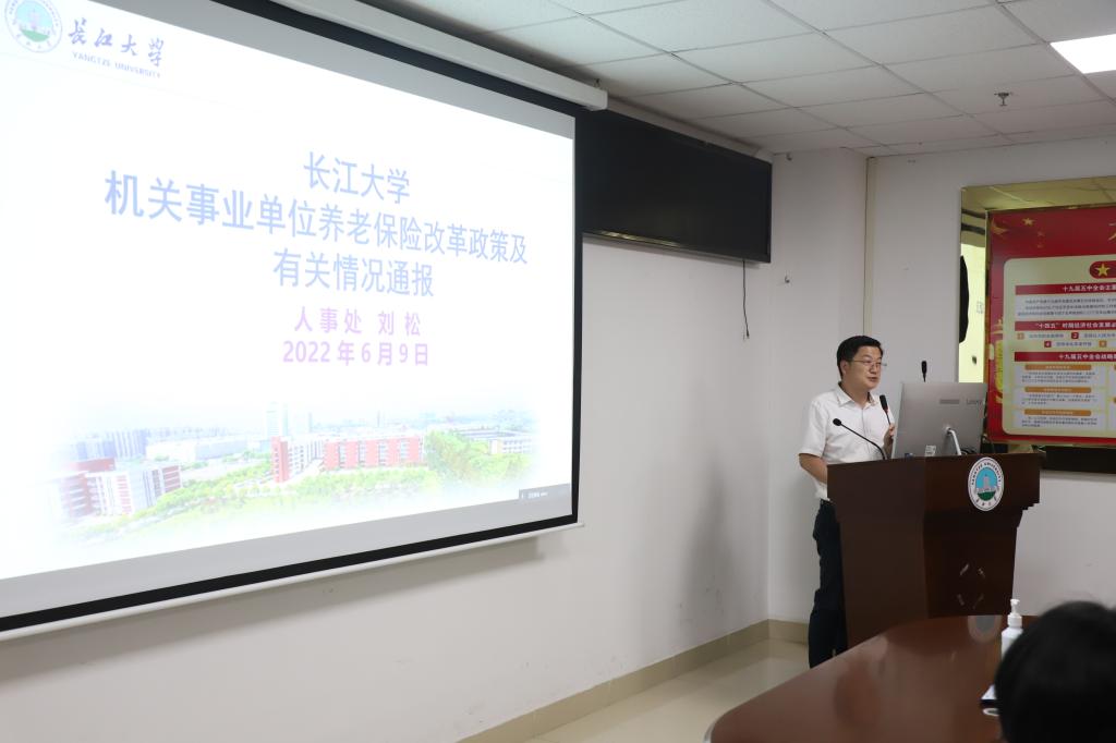 校人事处刘松副处长应邀到我院为全体教职工作了伟德国际victor1946机关事业单位养老保险改革有关政策及情况通报。他围绕学校养老保险的历史沿革、政策依据、核算方法、改革目标等四个方面对学校的养老保险改革进行了详细的政策解读。