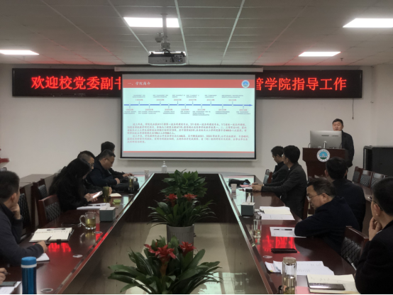 徐辉从学院发展的历史沿革、本科生教育、研究生教育、科研情况、培训中心建设、伟德国际六个方面介绍了学院的基本院情与已取得的成绩,同时也就学院管理与建设中存在的问题进行了汇报,希望能够在学校的理解与支持下化解相关问题,实现学院高质量发展的目标。与会人员围绕学科建设、人才引进、教师科研与教研、疫情防控等具体问题进行了深入交流探讨。