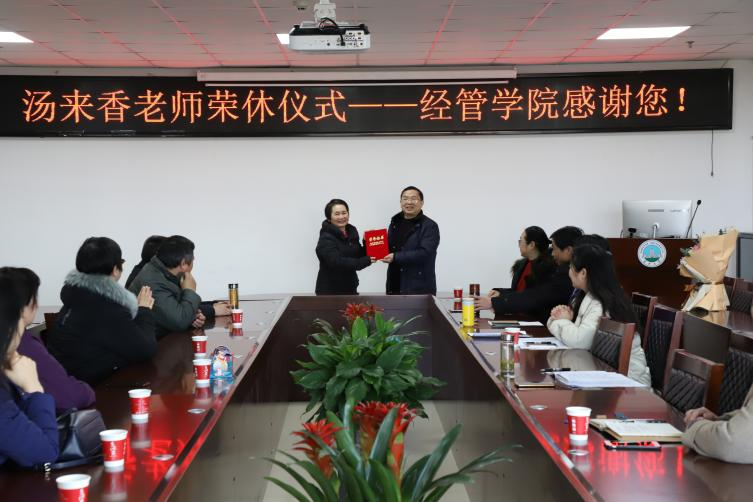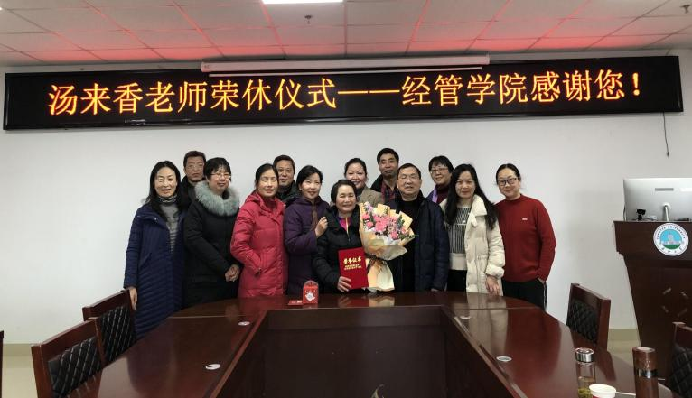 12月28日下午,伟德bv1946为本年度退休的汤来香老师举行了荣誉退休仪式。学院党委书记樊帆、副书记王中梅、副院长郭睦庚、裴潇及部分教师代表出席仪式,仪式由会计系主任康玉梅老师主持。