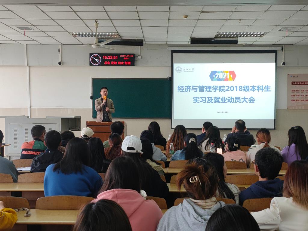 (通讯员 苏帅)10月13日下午3点,伟德bv1946在12教202召开2018级本科生实习及就业动员大会。学院党委副书记王中梅、教学办及学工办老师出席会议,2018级本科生参会,会议由学院就业专干李博老师主持。