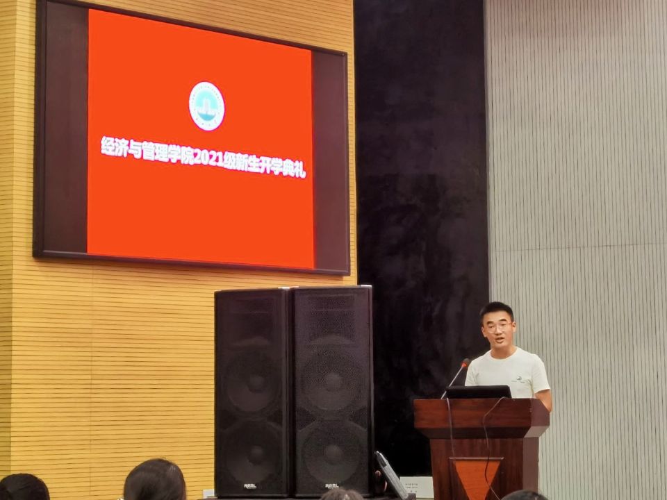 随后,伟德bv1946老生代表会计11801班潘聪发言。他以自身的经历勉励新生,脚踏实地,学好知识,将个人理想同实现国家发展需要相结合,在新的起点不负时代不负国,不负青春不负己。