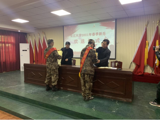 (通讯员 黄承石)2021年3月22日,学校学工部领导和老师代表在荆州区狼牙基地参加了伟德国际victor19462021年春季新兵入伍欢送仪式。伟德国际victor1946学工部部长徐波、副部长谢作喜、征兵办主任周正江、经管学院征兵负责人黄承石参加了此次欢送会。