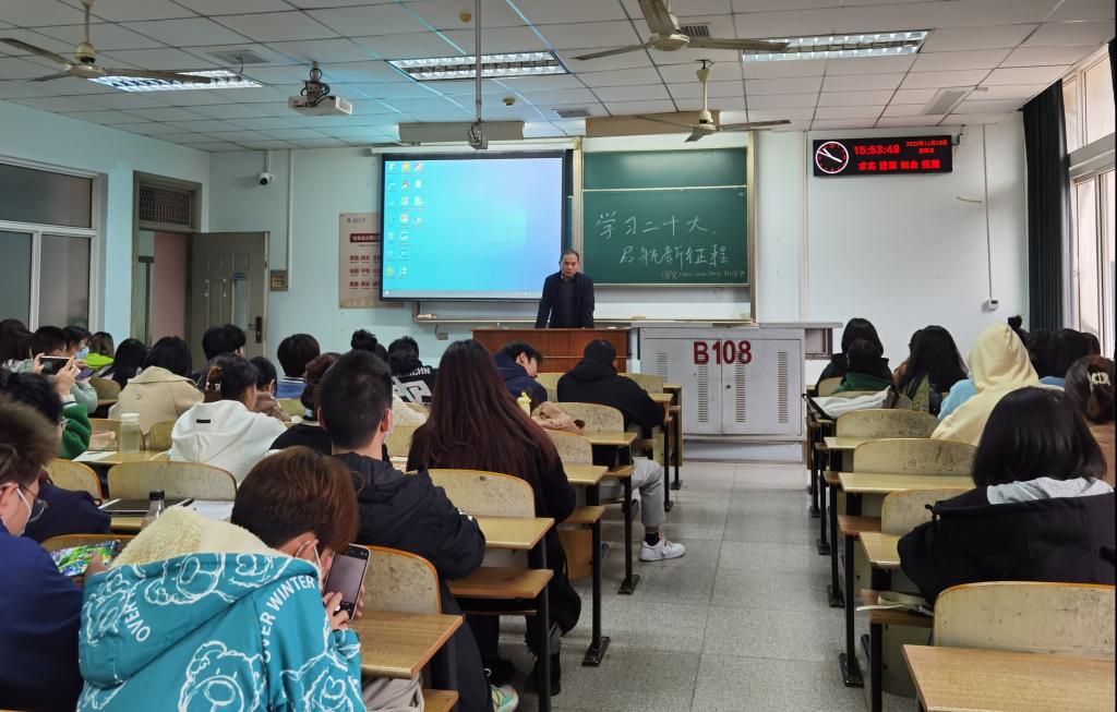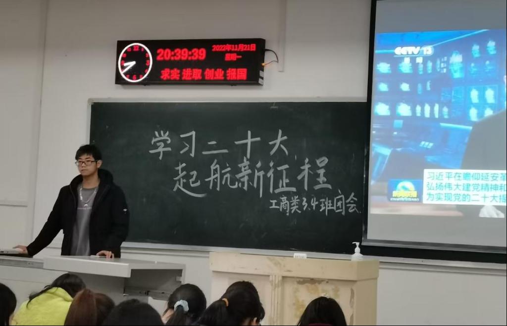 在班会上,学院辅导员、班主任老师首先带领班级学生共同学习党的二十大报告。从二十大的大会主题、三件大事、三个务必开始学起,学习贯彻党的二十大精神,深刻领会中国式现代化的中国特色和本质要求,深刻领会党对青年一代的殷切期望。其次,班长组织学生观看“我们这十年”的学习视频,让同学们进一步了解十年来党和国家的事业取得的历史成就和伟大变革,认识到新时代十年的里程碑意义,并围绕党的二十大提出的新目标、新任务、新要求,引导我院学生坚定不移听党话,跟党走,争做有理想、敢担当、能吃苦、肯奋斗的新时代好青年。随后,各班团副组织班级学生开展“学习二十大,教育在行动”线上答题活动,同学们积极参与党的二十大精神线上答题,并提交了满意的答卷。