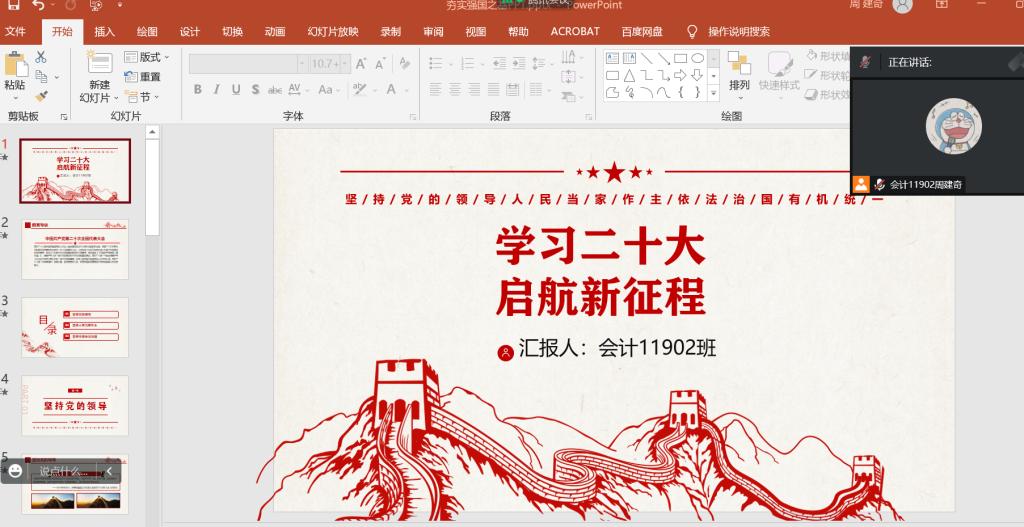(通讯员 孟宪锦弘)为深入学习宣传贯彻党的二十大精神,培养青年学生爱党爱国爱人民的精神品质,引导广大学生坚定不移听党话、跟党走,做有理想、有本领、有担当的社会主义新青年。2022年11月,伟德bv1946组织各班开展了以“学习二十大,启航新征程”为主题的班团会。本次主题班会,学习内容丰富,学习形式多样化,线下班会和线上班会结合同步进行,使我院92个班年级全覆盖,2966名本科生全员参与,主题教育学习活动取得良好的效果。