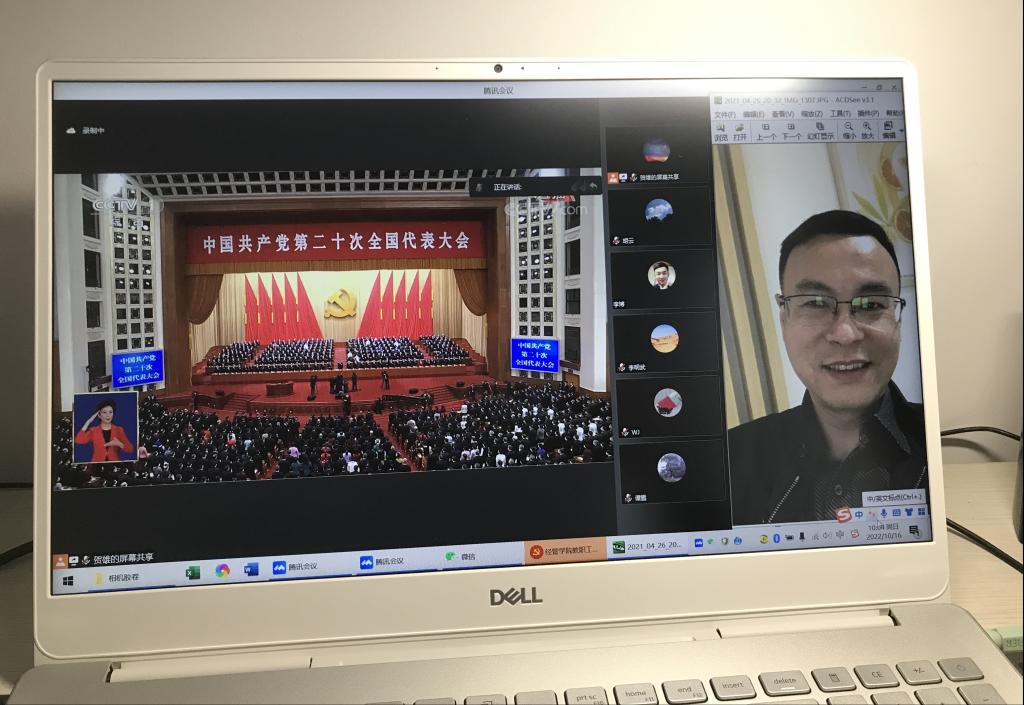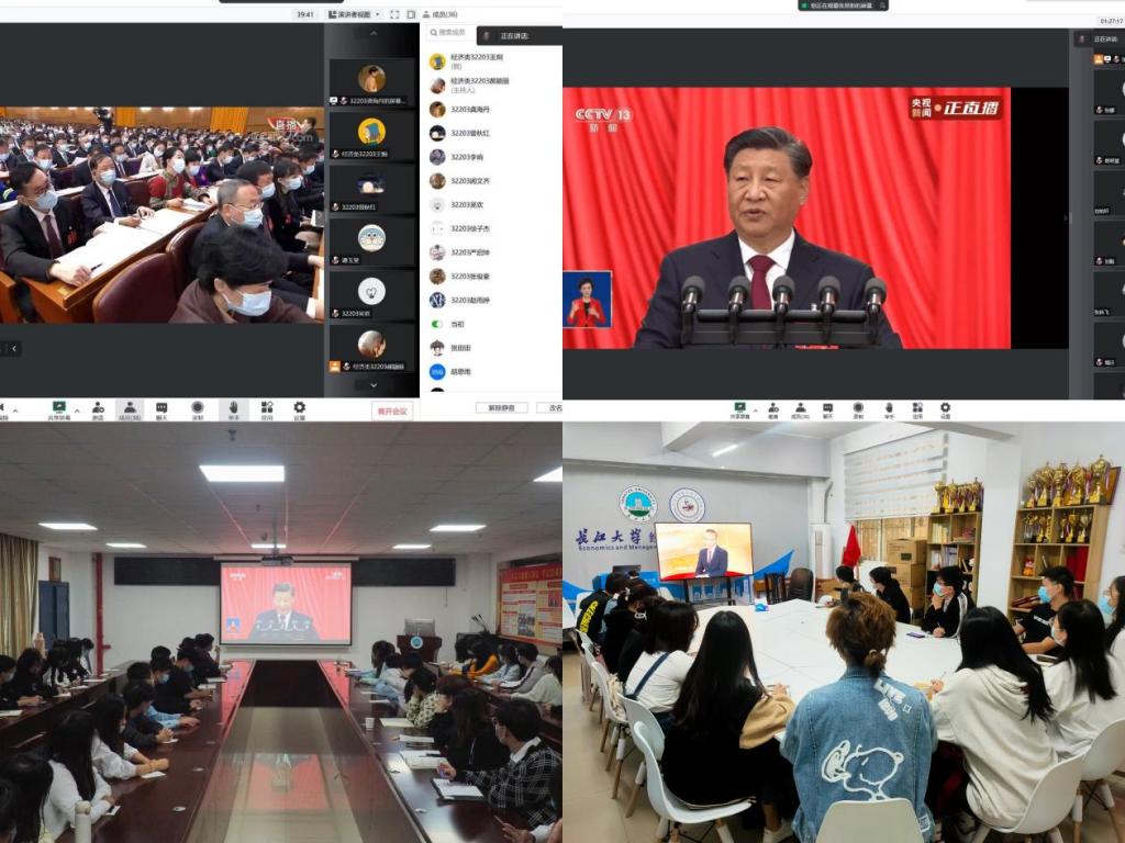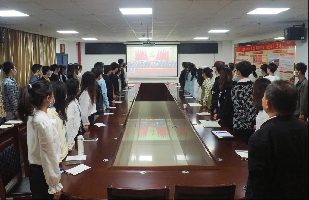 本次学习会议分线上线下相结合的方式进行,学院领导和教职员工以线上收看为主,团委学生会干部以及学生支部党员在院党委副书记王中梅、辅导员娄君庭老师的带领下分别在文科大楼505会议室、新风会议室集中观看党的二十大开幕会实况直播,其他本科生班级在学生宿舍通过线上腾讯会议的方式同步收听观看。