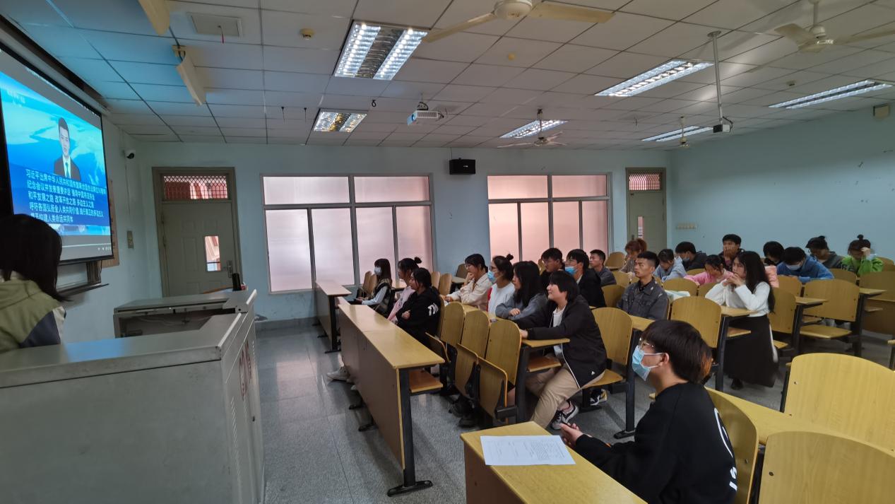 其次,围绕着“中国恢复联合国合法席位50周年”主持人结合新闻报刊、视频材料、有奖问答深入简出地介绍了本次主题团会活动内容。在有奖问答的环节中,同学们积极认真、主动配合,在问与答的交互中了解到中国将坚持走和平发展之路、坚持走改革开放之路、坚持走多边主义之路。