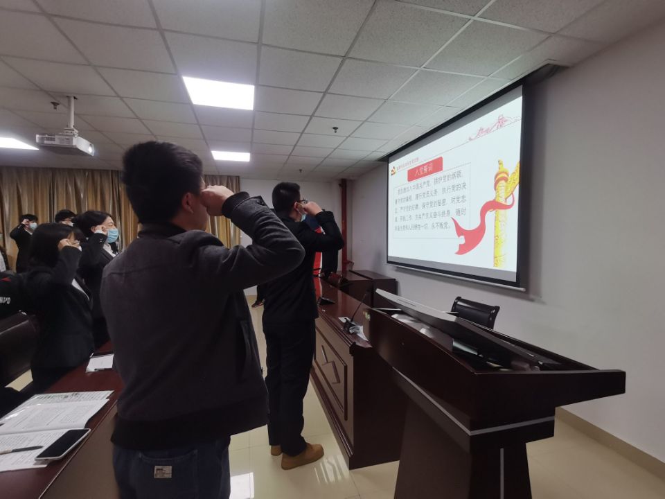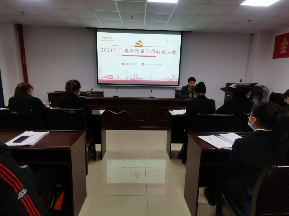 会议伊始,由主持人黄承石老师介绍会议流程。会上,郭璇等4位预备党员相继汇报自己在预备期间中的表现,总结了在思想上、工作上、学习上以及生活上的进步和不足,最后表达了自己对加入中国共产党的坚定决心和信念。汇报完毕后,正式党员进行不记名投票,主持人黄承石老师宣读决议,郭璇等4位预备党员全票通过按期转正。在贾谊同志的带领下,全体党员在庄严的党旗下宣读入党誓词。