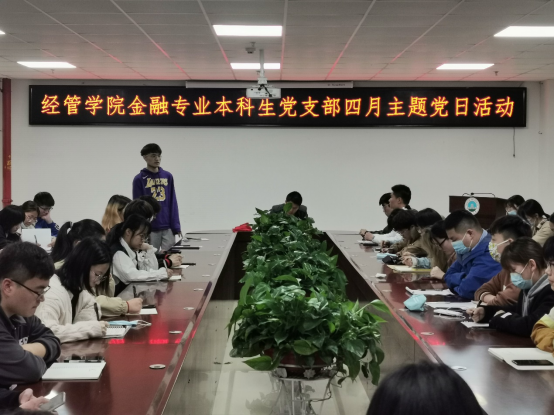 (通讯员:贾溢)2021年4月10日晚上七点,伟德bv1946金融专业本科生党支部在文科楼505召开4月主题党日会议暨2021年上半年党员发展预审大会,支部书记黄承石主持会议,支部党员和全体发展对象参加会议。