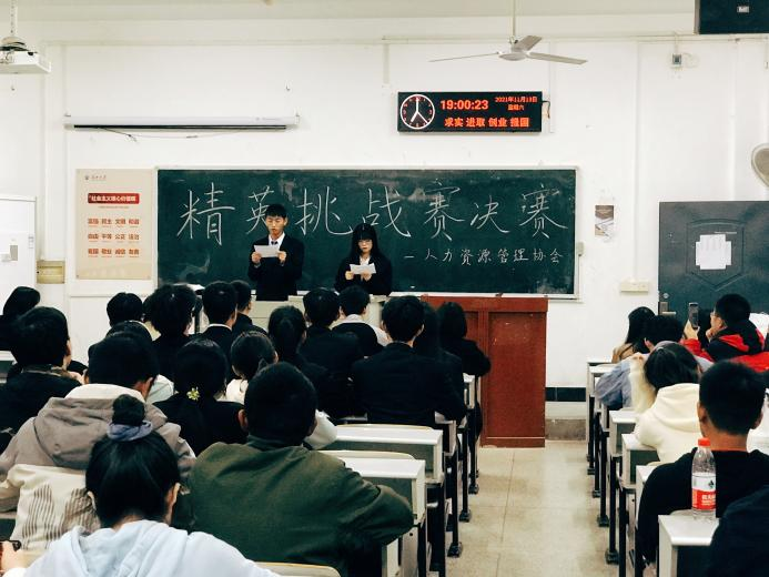为培养学生的核心竞争力,提高学生逻辑思维能力、团队意识和沟通能力。11月13日晚19点,由伟德bv1946人力资源管理协会举办的“精英挑战赛”决赛在伟德国际victor1946西校区7教107拉开帷幕。本次比赛邀请了荆州市百顺教育指导老师吕兵、伟德国际victor1946市场营销协会会长邱少杰、伟德bv1946团委学生会副书记赵喜悦担任评委。