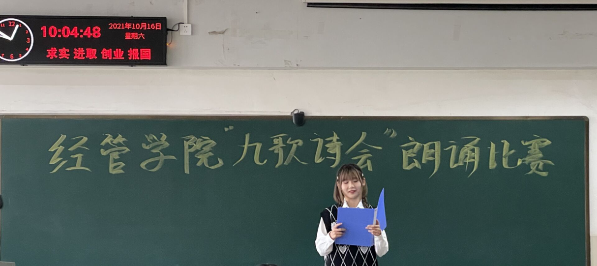 本次活动比赛分为诗歌征文和诗歌朗诵两部分,朗诵经典和原创诗歌作品。经管学子积极报名参加比赛。初赛现场,选手们高度重视,皆有备而来。随着背景音乐的响起,选手们以铿锵有力的气势,自信大方的展示了自己的实力,表达了对祖国日新月异向好发展变化的骄傲之情,赢得了在场评委和同学们的阵阵掌声。虽为初赛,但比赛气氛活跃,无不彰显出我院青年学子的殷殷爱国之情。同学们感情丰富、富有创意,准确把握作品内涵与格调,把诗词的意境表现得淋漓尽致,令人意犹未尽。随着最后一首背景音乐的暂停,初赛接近尾声。至此经管学院“诗赞百年史,歌颂新时代”朗诵大赛初赛圆满结束。