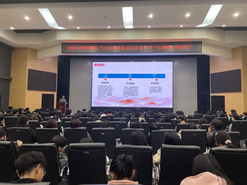 (通讯员:单晴蜓)伟德bv1946于11月19日晚19点在西校区农科大楼1058报告厅召开了2022年春季征兵宣讲会。本次会议由郭俊老师主持,言简意赅地强调了会议秩序,并对李东俊同学和殷博同学这两名经管学院征兵宣讲员表达了热烈的欢迎。两名宣讲员分别从军旅生活和征兵政策两个部分对同学展开宣讲。