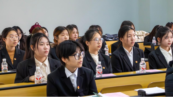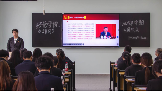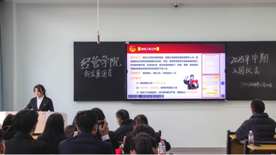 入团仪式结束后,活动进入团干部教育实践环节。市销12402班李仕维带领全体成员进行专题学习,深刻领会党的二十届四中全会精神;金融12402班罗嫣霞则围绕基础团务知识开展业务培训,进一步提升了团干部的理论素养与实务能力。
