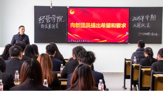 学院党委副书记平先锋对新团员表示祝贺,并基于学生成长实际提出三点希望:一要筑牢政治根基,持续提升理论素养,关心时事政策,规范网络言行,锻造清醒的头脑与坚定的政治立场;二要专注学业发展,夯实专业基础,端正学习态度,克服懈怠情绪,以扎实学识构筑个人核心竞争力;三要积极投身实践,服务社会大局,善用第二课堂拓展能力,在实践中锤炼本领,努力成长为担当民族复兴大任的时代新人。