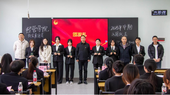 在庄严的国歌声中,仪式正式启幕。主持人宣读新团员名单后,与会领导老师为新团员颁发团员证并佩戴团徽。在徐静伶同学的领誓下,全体新团员面向团旗庄严宣誓,正式加入中国共产主义青年团。随后,陈玉洁作为新团员代表发言,表达了加入团组织的荣誉感与为之奋斗的决心;优秀团员代表会计12202班张梦微则分享其成长体会,勉励新团员砥砺前行、积极进取,在团组织中锻炼成长、共同进步。