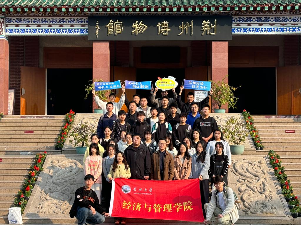 在感悟传统文化中厚植荆州情怀。在荆州博物馆,同学们先后参观了《吉金耀彩——荆州出土铜器展》《五大夫遂——凤凰山168号汉墓展》《丹漆神韵——楚秦汉漆器精品展》等8个具有浓郁地方特色的基本陈列,系统了解了荆州历史文化和文物精品。参观过程中,同学们被“越王剑”的传奇所吸引,那剑身背后隐藏的种种可能性,引人遐想,让同学们不禁沉醉于历史那深邃而神秘的魅力。看到五大夫遂栩栩如生的身体时,两千多年前的智慧之光赫然显现,那高超的医药与防腐技艺,让五大夫遂的躯体得以跨越千年而不朽。通过这次参观,同学们深刻体会到了荆州作为历史文化名城的独特魅力和深厚底蕴。他们对荆州的情怀,在每一次凝视与沉思中悄然生长,愈发根深叶茂,这份情怀将激励着他们为荆州这片古老的土地增添新的光彩。