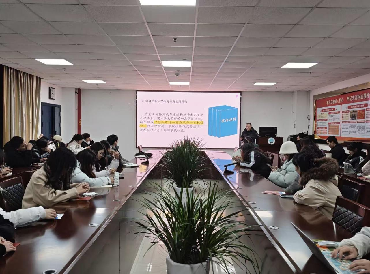 讲座从制度经济学与政治经济学视角展开分析,内容紧扣政策前沿,数据详实、问题导向明确,为师生提供了清晰的研究框架和选题参考,对把握农村土地制度改革前沿具有重要启发。最后,讲座在现场师生互动中圆满结束。
