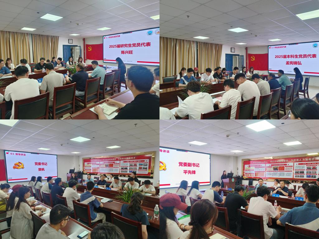 随后的代表发言环节,毕业生党员代表研究生陈兴旺、本科生孟宪锦弘结合自身学习成长经历,分享了作为学生党员的感悟与收获,表达了对党组织的感恩之情和未来立足岗位、发挥先锋模范作用的坚定决心。优秀毕业生代表郑玉兰、彭文桦则分享了在校期间的学习心得与成长收获,畅谈了对未来的规划与憧憬,展现了经管学子积极向上、追求卓越的精神风貌。