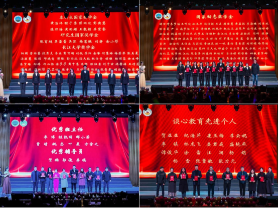 随后,学院党委副书记平先锋宣读2025年度学生与教师系列表彰决定,与会领导为获奖代表颁奖。大会特设荣休教师致敬环节,学院党委书记李喜成为郭睦庚、韦鸿、胡莎三位老师颁奖,全场以热烈的掌声致敬他们高尚的教育情怀。