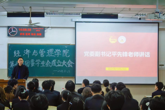 在总结讲话中,平先锋副书记充分肯定了第六届学生会的工作成效。随后围绕新阶段的工作,向新一届成员提出四点要求:一要筑牢思想根基,做好领航者;二要践行服务宗旨,当好贴心人;三要提升综合能力,争当实干家;四要锤炼过硬作风,勇当排头兵,共同打造一支素质高、能力强、作风正的学生骨干队伍。他强调,团委学生会是学院发展与学生成长的重要力量,希望全体成员珍惜平台、勇担使命,为学院高质量发展贡献青春智慧。