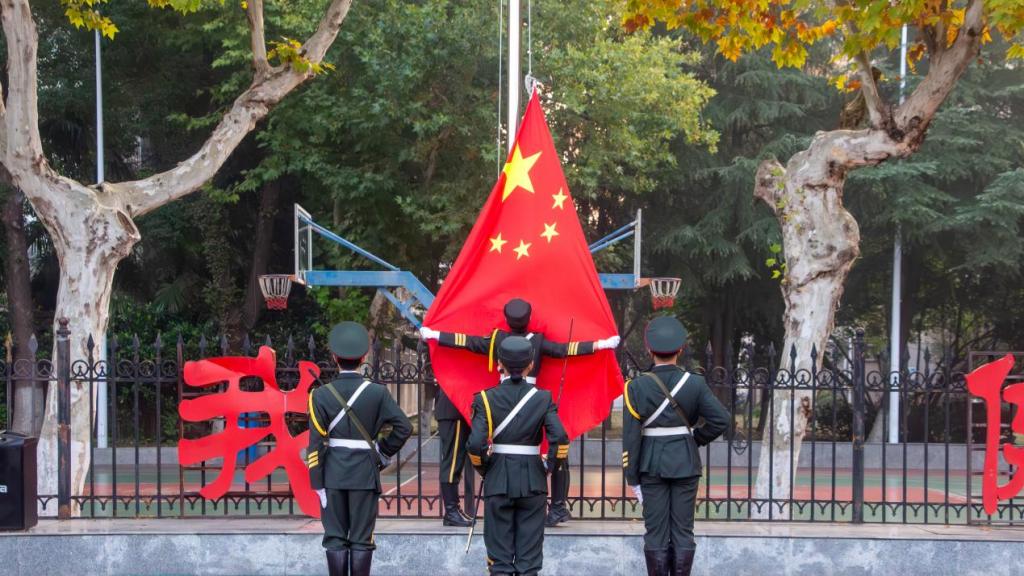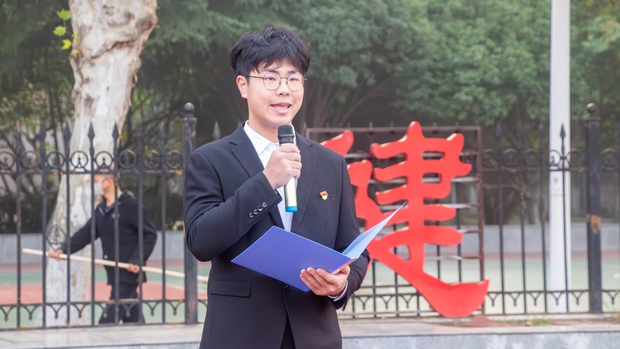 七时整,国旗护卫队迈着整齐有力的步伐护送国旗入场。在庄严的国歌声中,五星红旗冉冉升起,全体师生肃立注目,齐唱国歌。随后,学生代表薛诗宸作国旗下发言,他号召同学们将个人理想融入学校发展大局,用经管所学服务国家所需,用于跨界创新,争做推动社会进步的新质生产力。