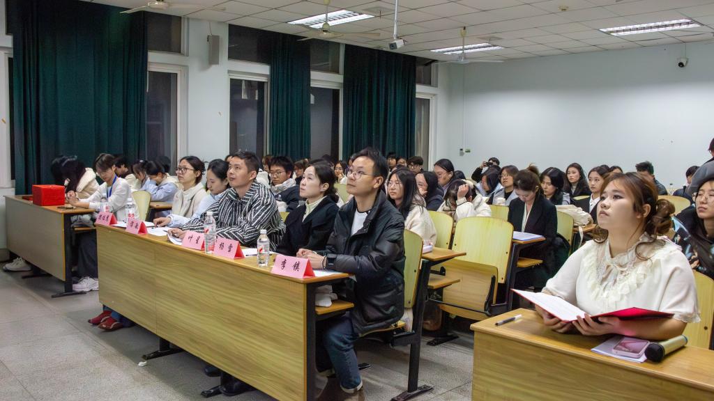 (通讯员 李镇 任鹏)为强化宿舍成员间团结协作的精神,培养温暖和谐的宿舍氛围,引导学生营造舒适整洁、安全健康的宿舍环境,12月5日晚7:00,学院在东校区13教B110教室举行2025年宿舍文化节决赛答辩会。学院学工办主任叶星、团委书记杨雪、辅导员李镇以及兼职辅导员代表、学生代表担任答辩评委,来自各年级的近百名同学到现场观赛。