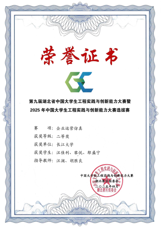 中国大学生工程实践与创新能力大赛是教育部高等教育司牵头主办的顶级A类赛事,旨在全面提升大学生的工程实践素养、创新精神和协同能力。本届大赛竞争异常激烈,我院作为第九届湖北省赛“企业运营仿真”赛道的承办单位,精心组织、周密安排,为赛事的顺利举行提供了有力保障。在院内选拔阶段,学院积极动员、广泛培育,从68支报名队伍中历经多轮角逐,最终选拔出5支精英队伍代表学校出征省赛。