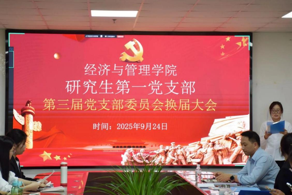 随后,召开了研究生第一党支部第三届党支部委员会换届大会,此次换届大会严格遵循《中国共产党章程》与《中国共产党基层组织选举工作条例》规定,大会伊始,由平书记宣读新一届支委会名单,为后续换届工作的开展奠定基础。
